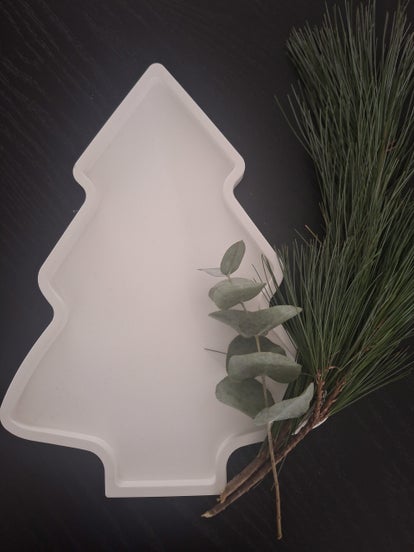 Mooi witte kerstboom van gips. Ook als schaaltje te gebruiken. Hoogte 27 cm.
