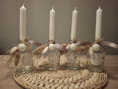 Mooi setje van advent vaasjes inclusief kaarsen en versieringen