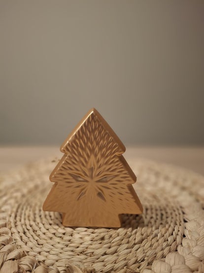Mooie metalen Goudbronzen kerstboom. De hoogte is 11 cm.
