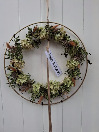 Mooie gouden ring met een doorsnede van 40cm. Mooie droogbloemen versieren de ring.